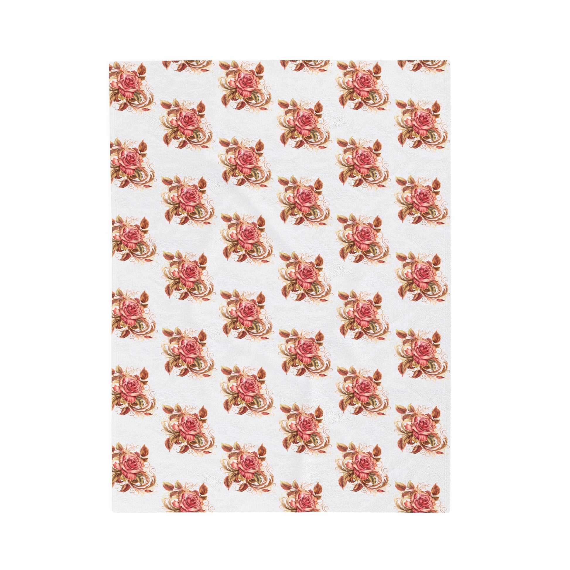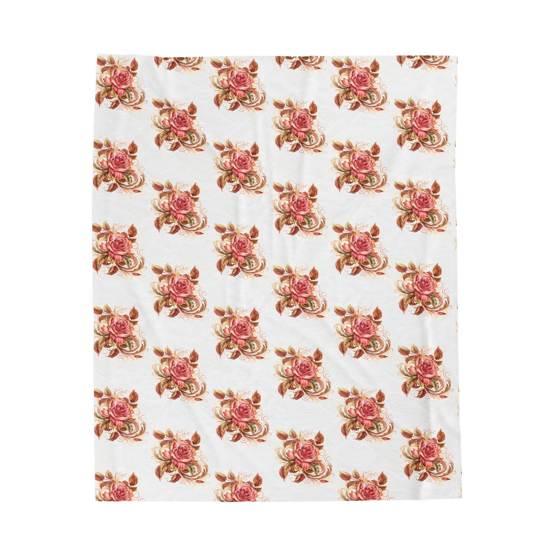 Velveteen Plush Blanket with beautiful grid design of pink roses surrounded by swirling leaves
