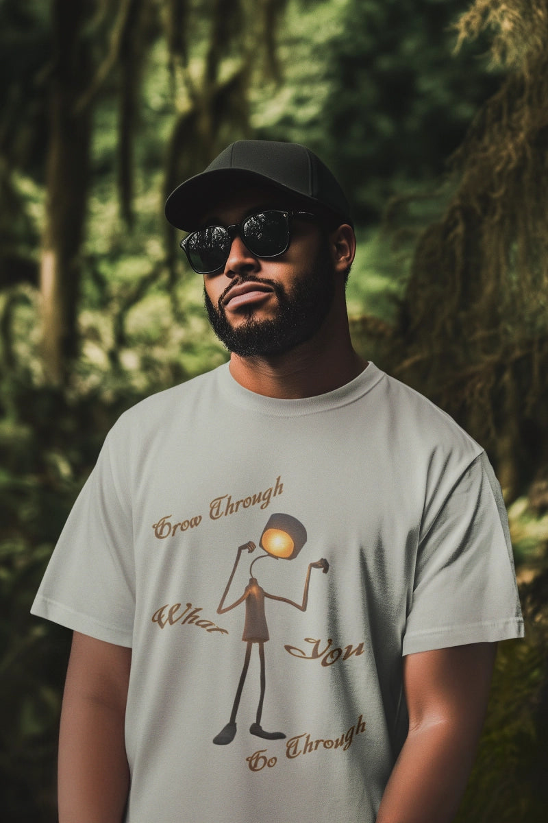 Victory Lamp Unisex Recycled Organic T-Shirt - Eco-Friendly Tee - Grow Through What You Go Through text design