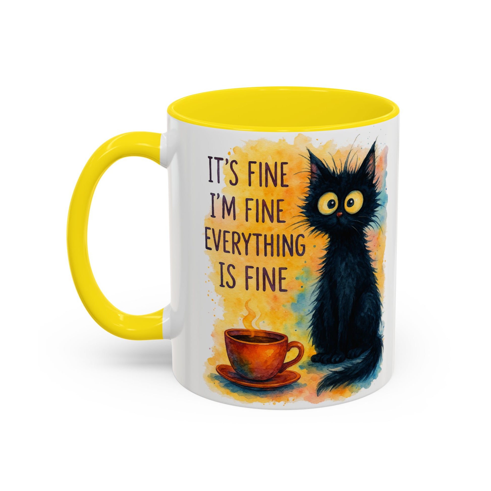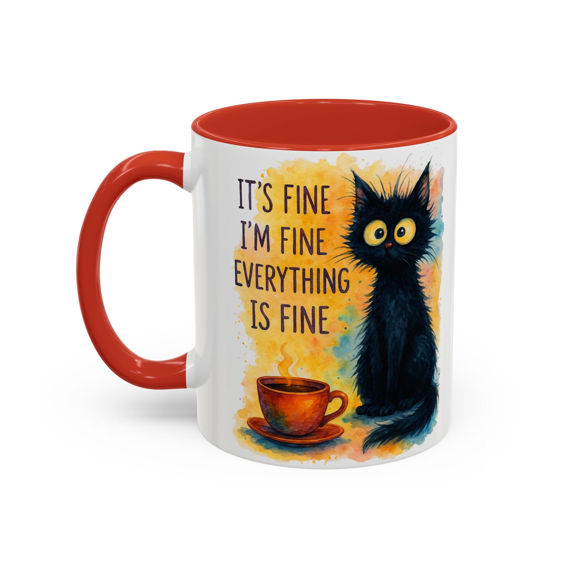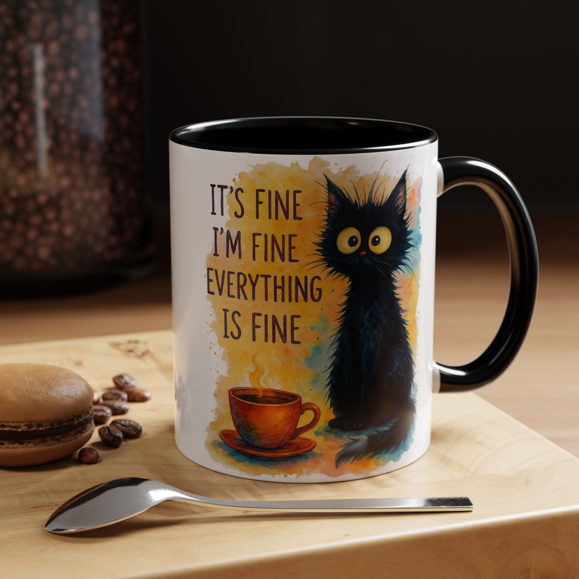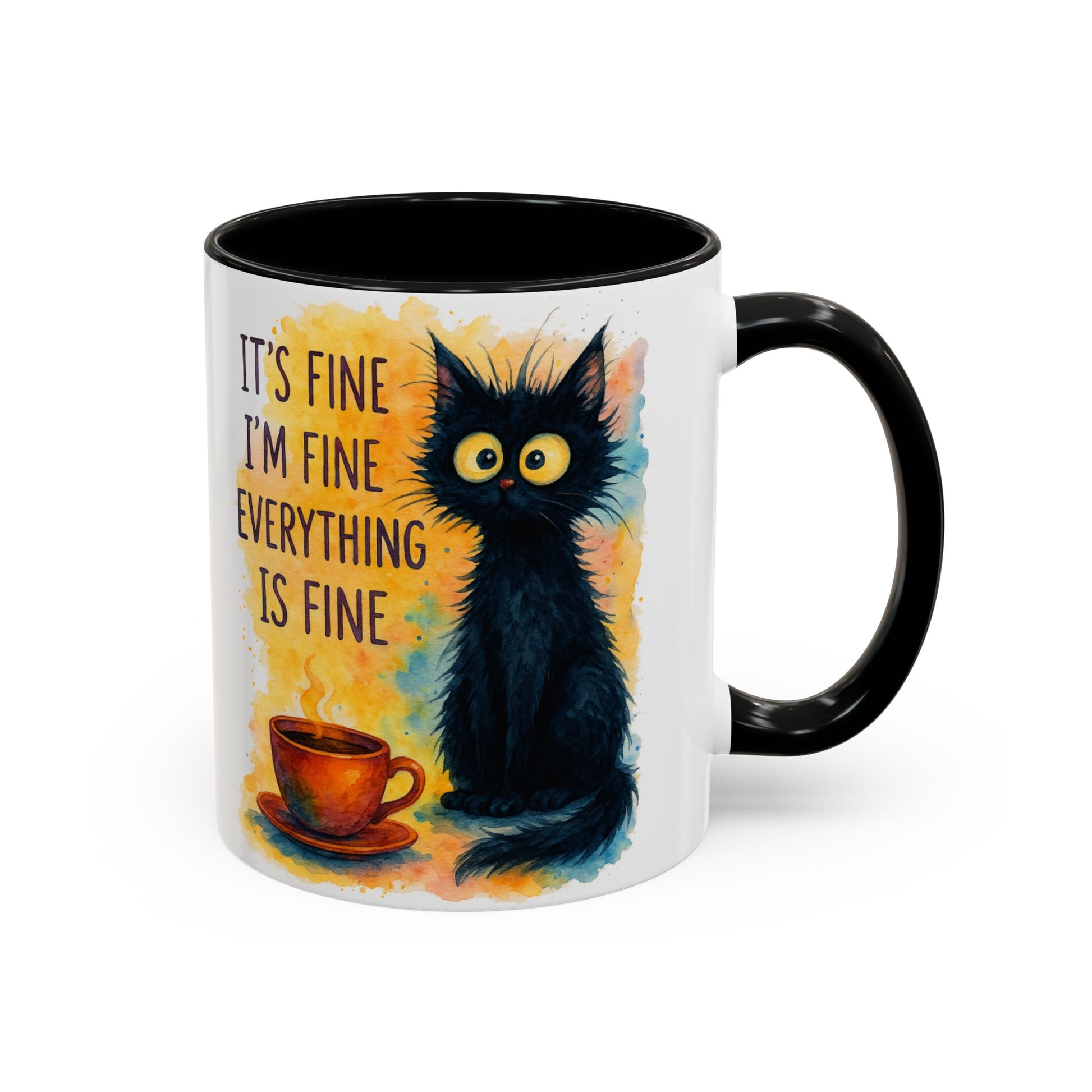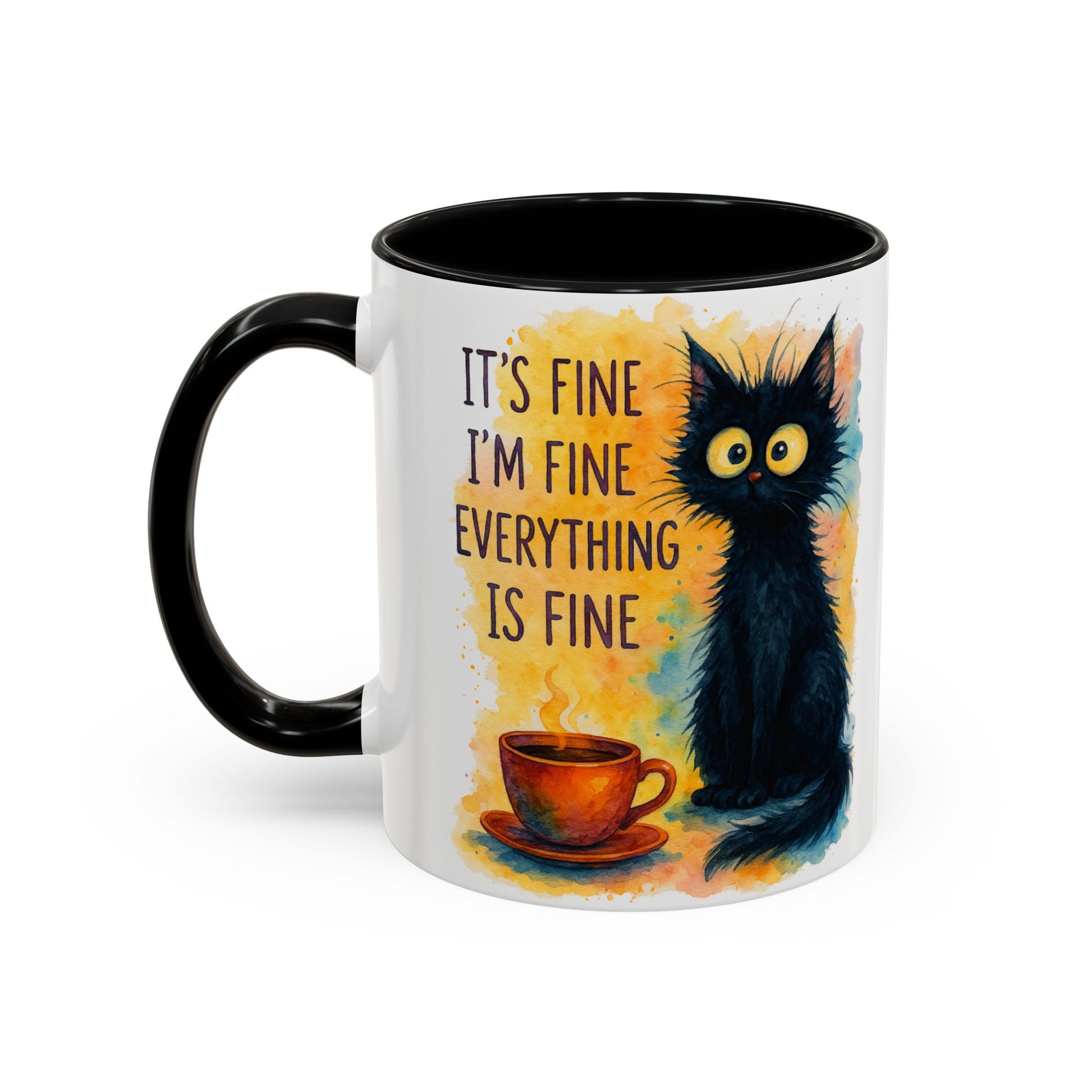 Whimsical Cat Accent Coffee Mug - 'It's Fine, I'm Fine, Everything is Fine'