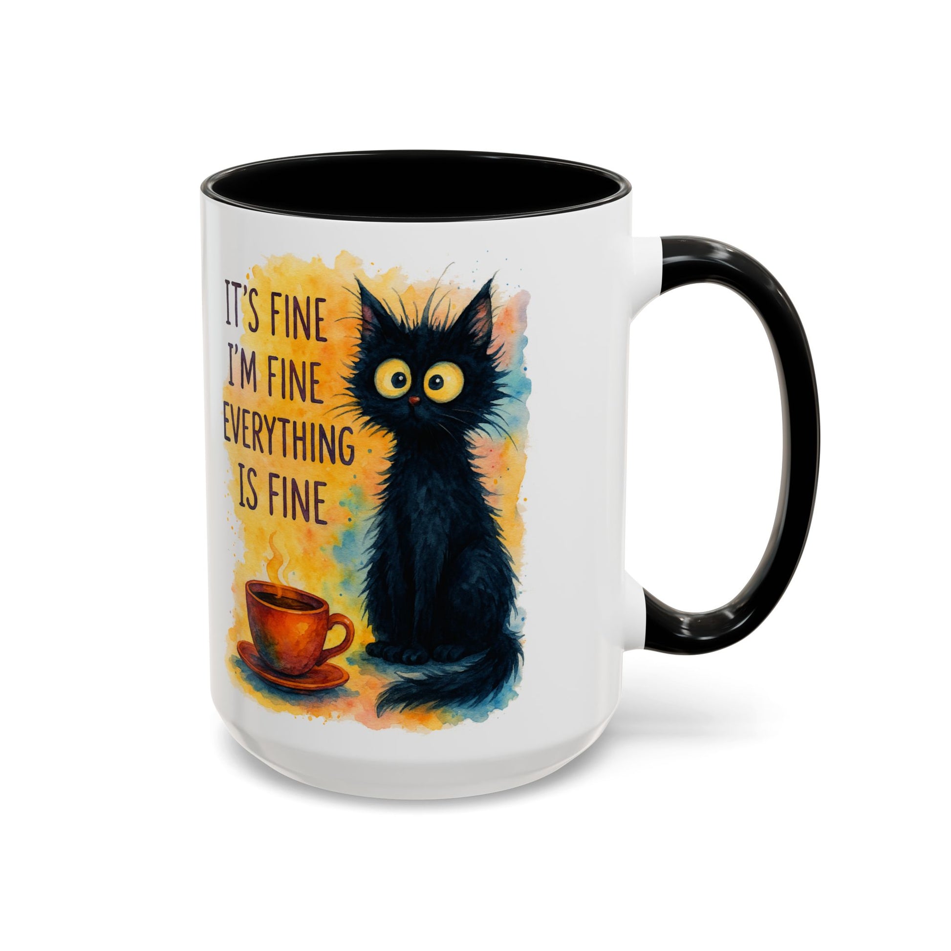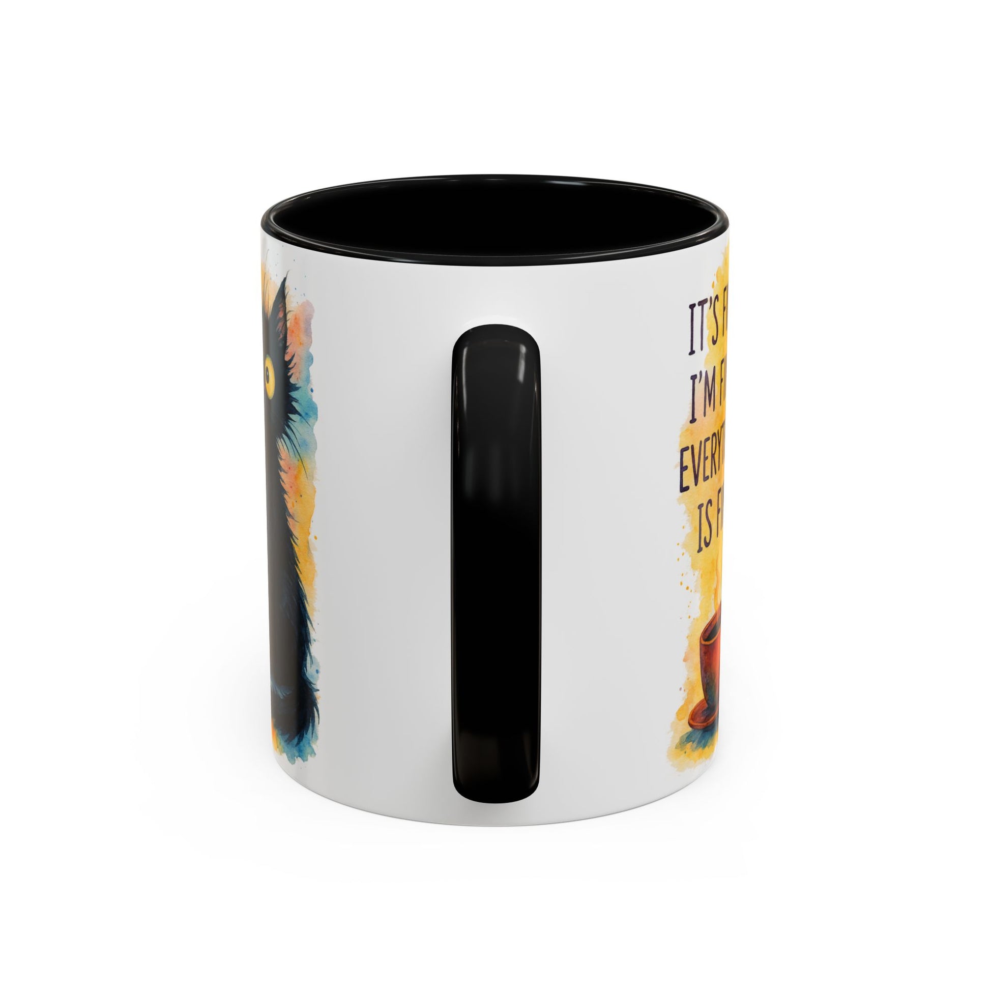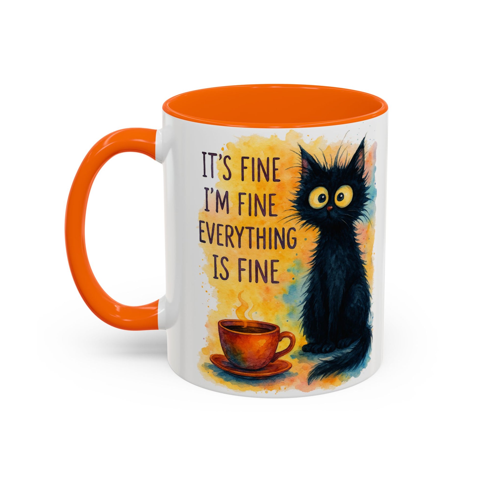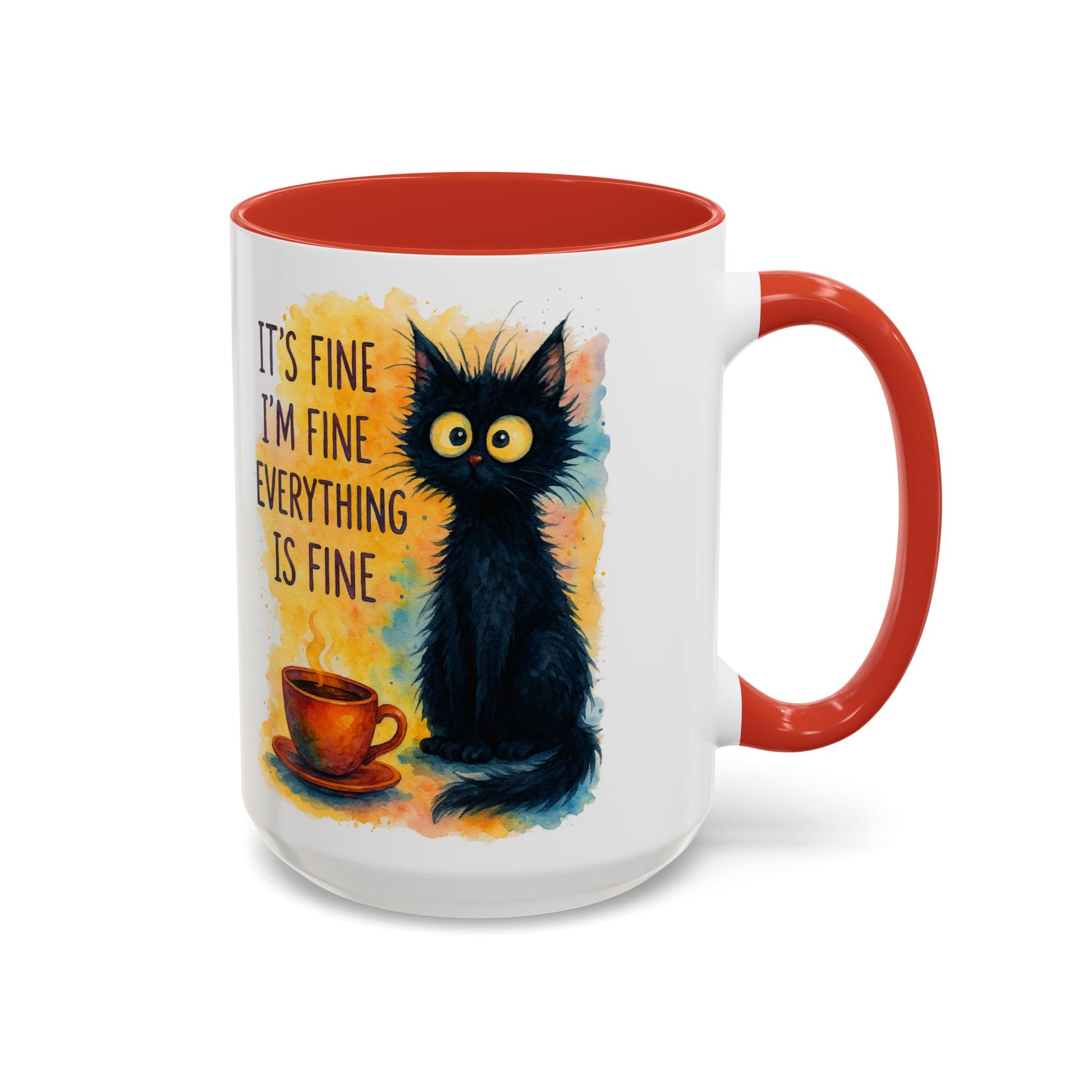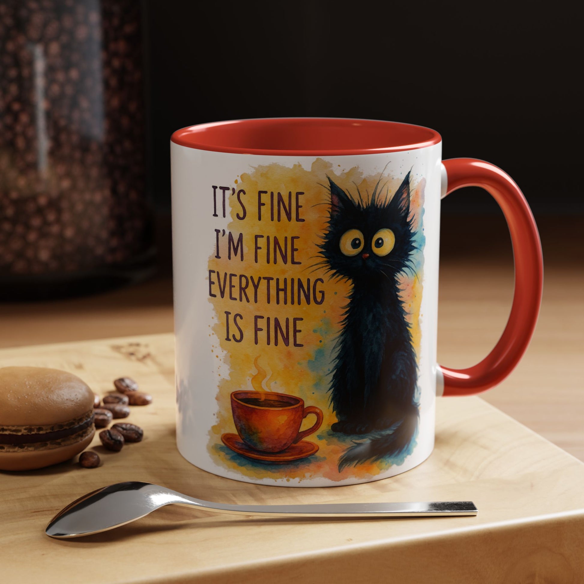 Whimsical Cat Accent Coffee Mug - 'It's Fine, I'm Fine, Everything is Fine'