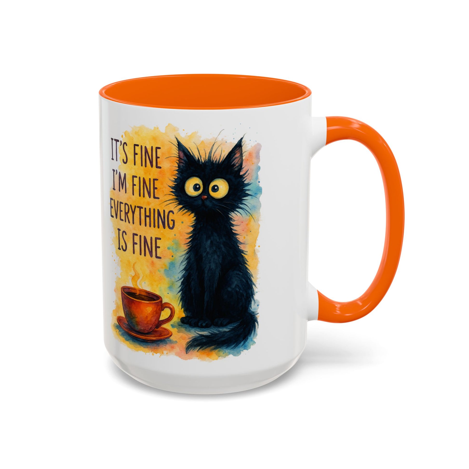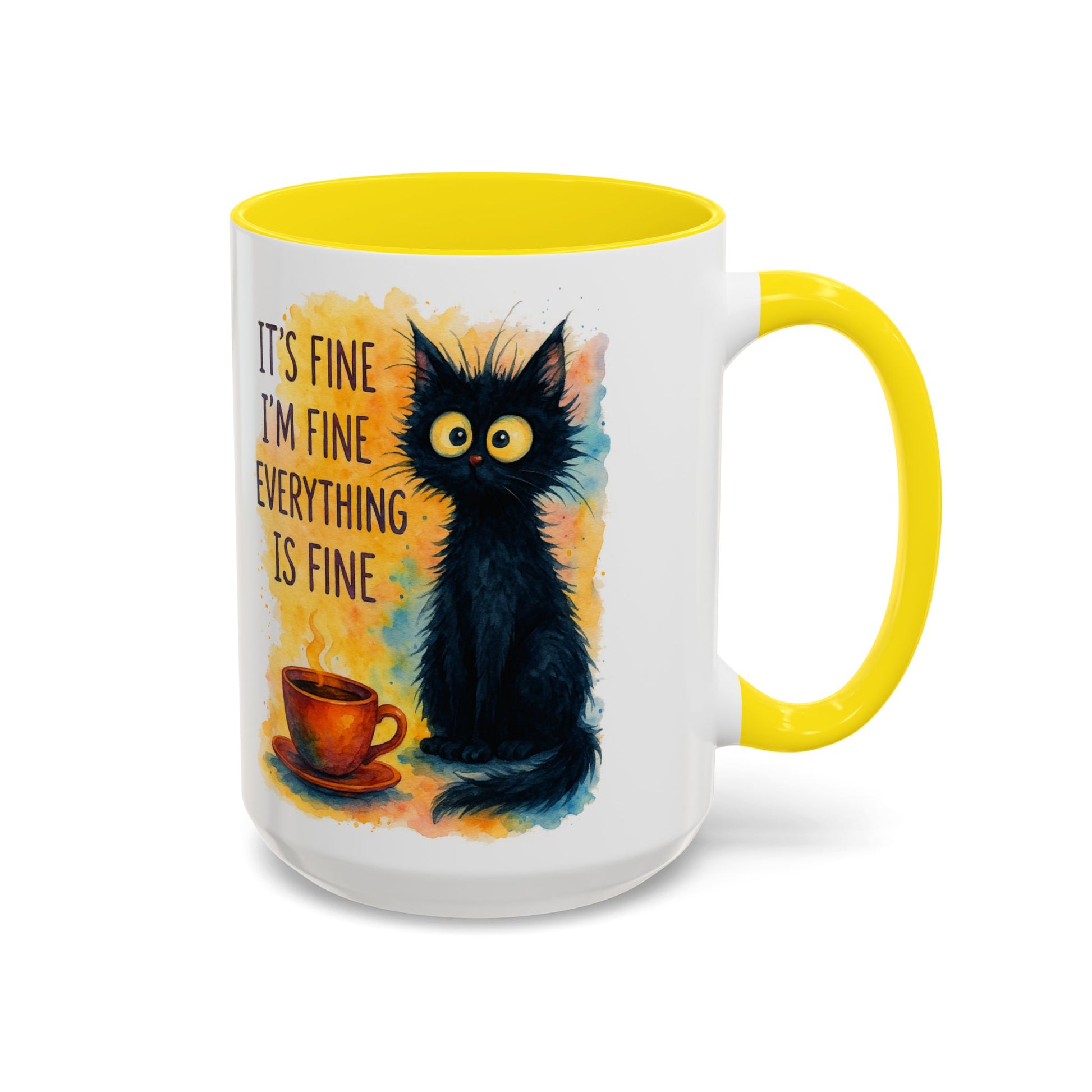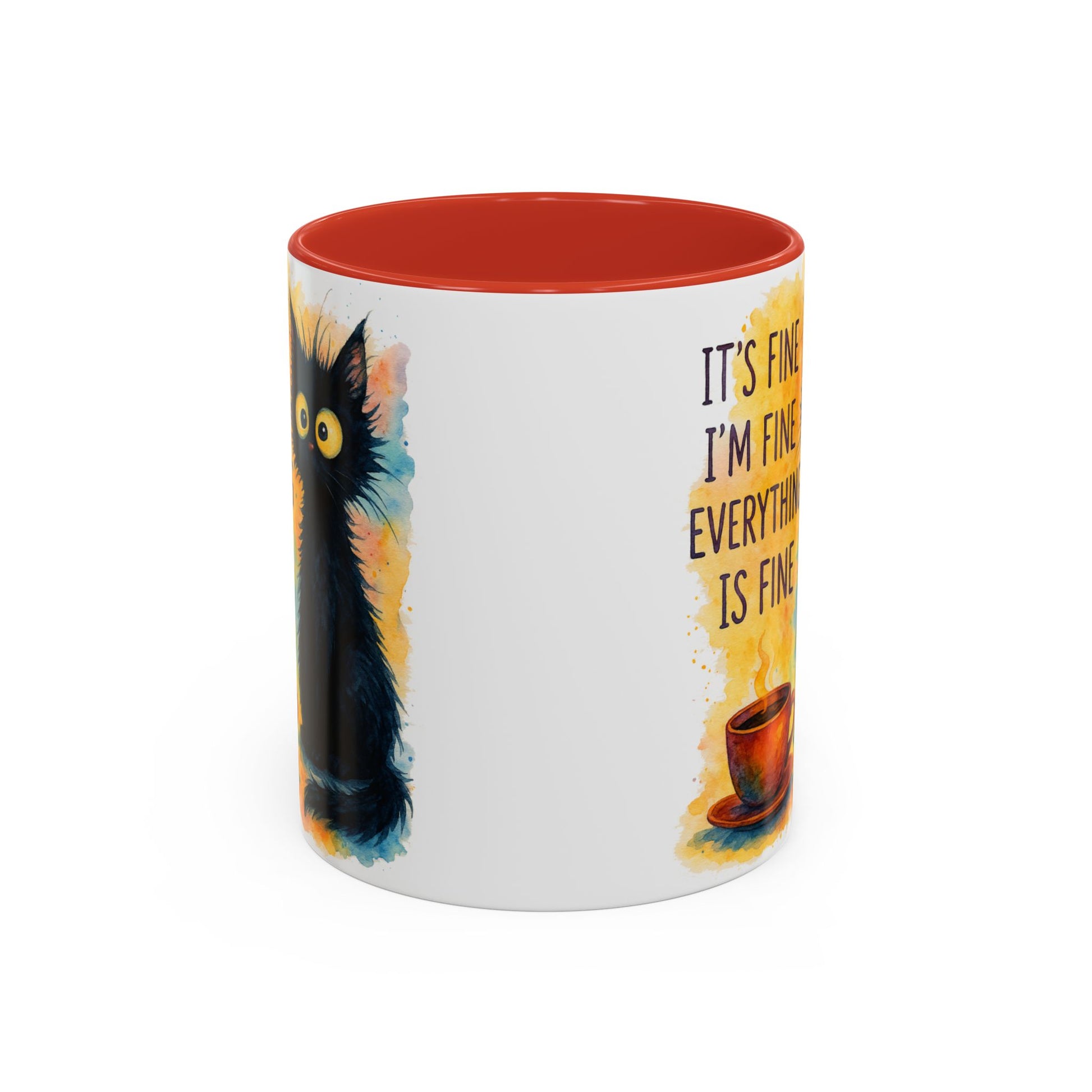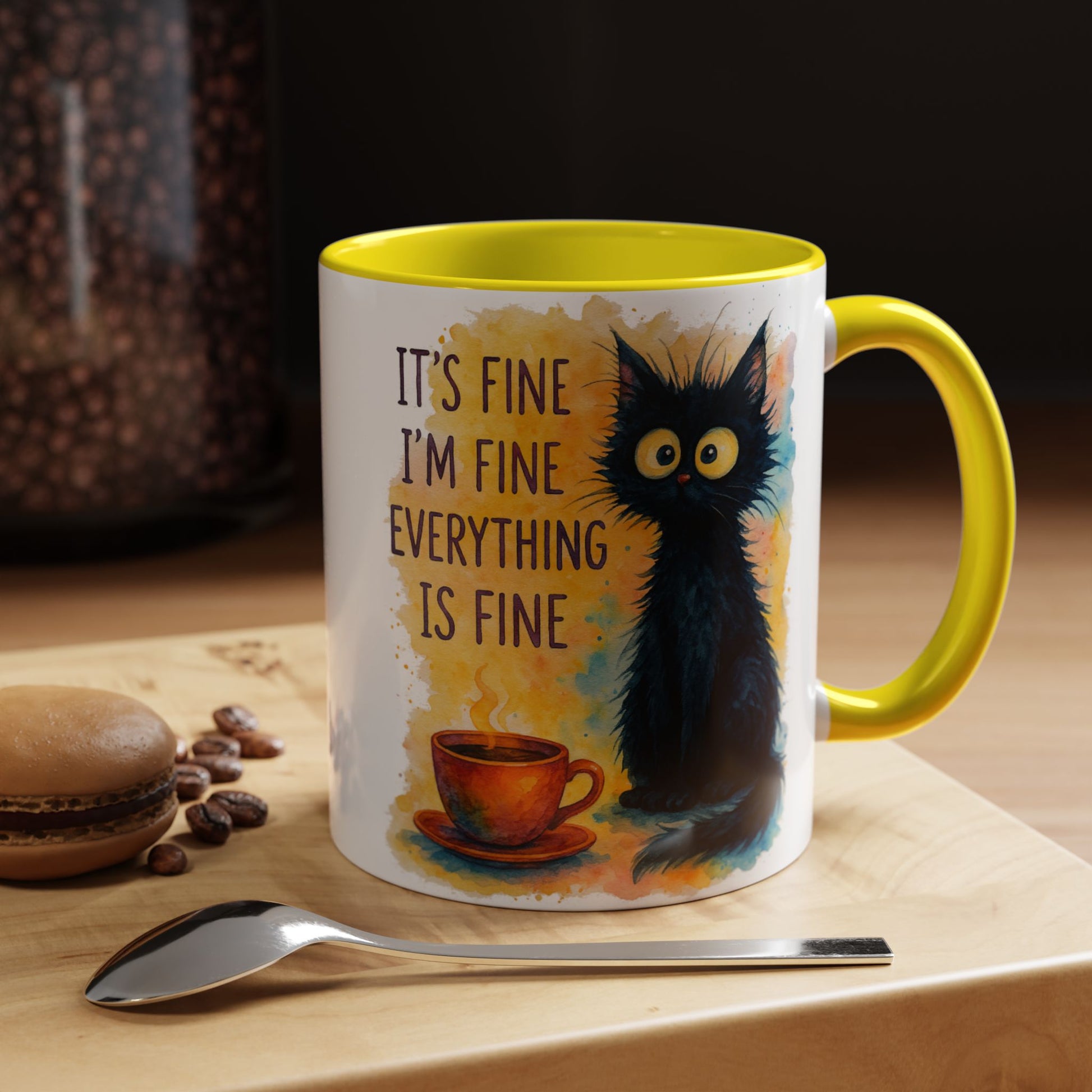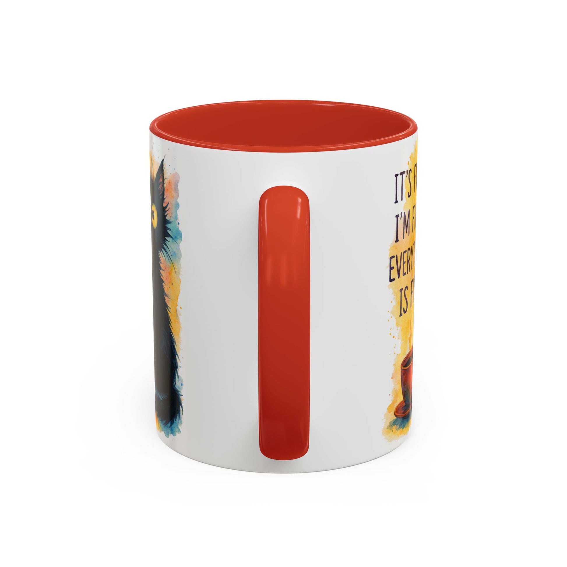 Whimsical Cat Accent Coffee Mug - 'It's Fine, I'm Fine, Everything is Fine'