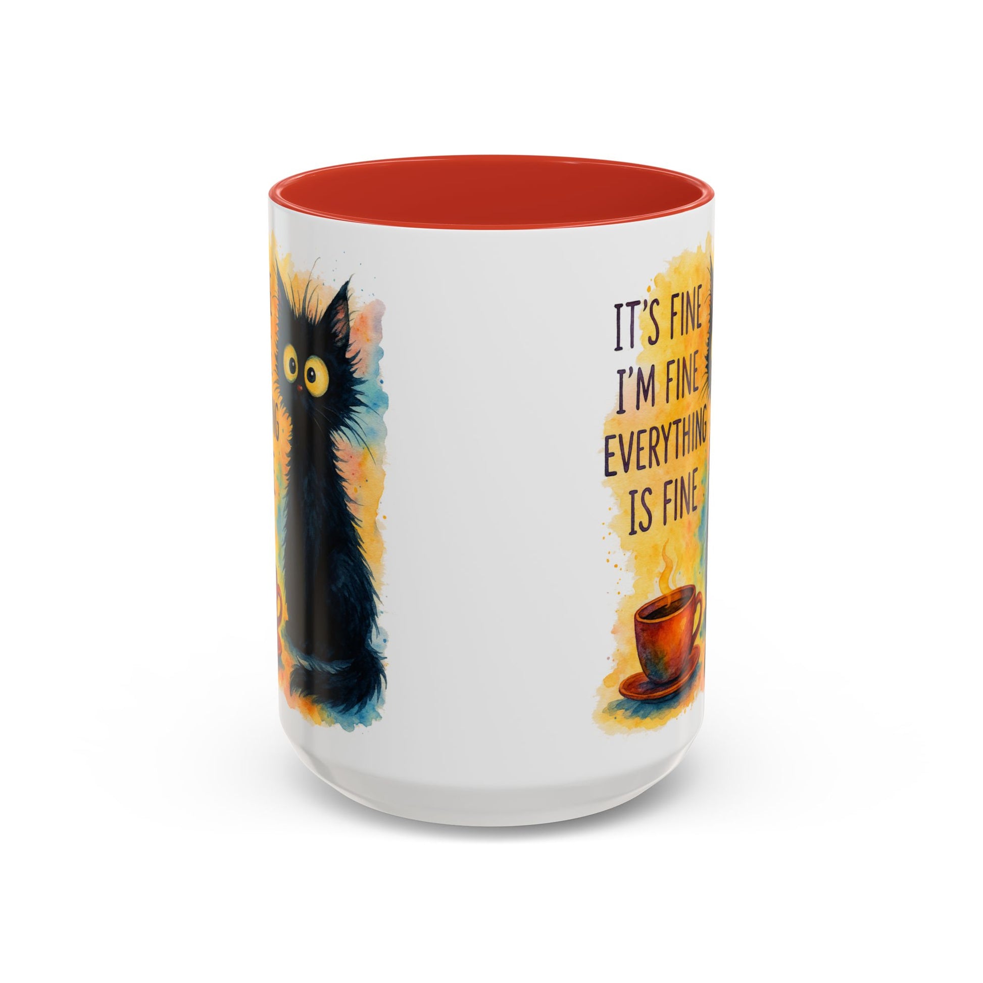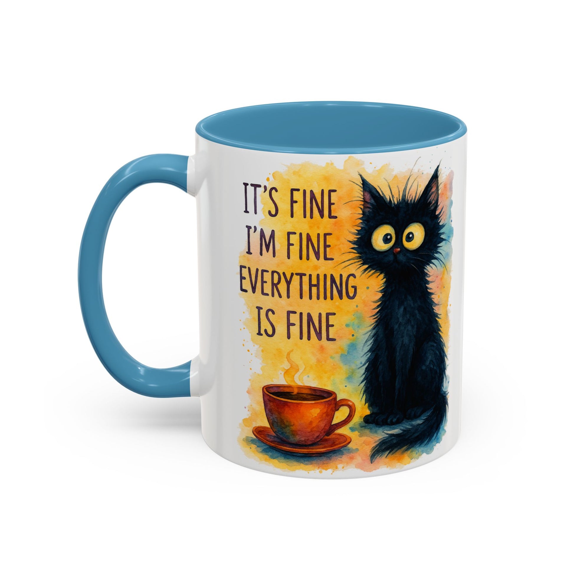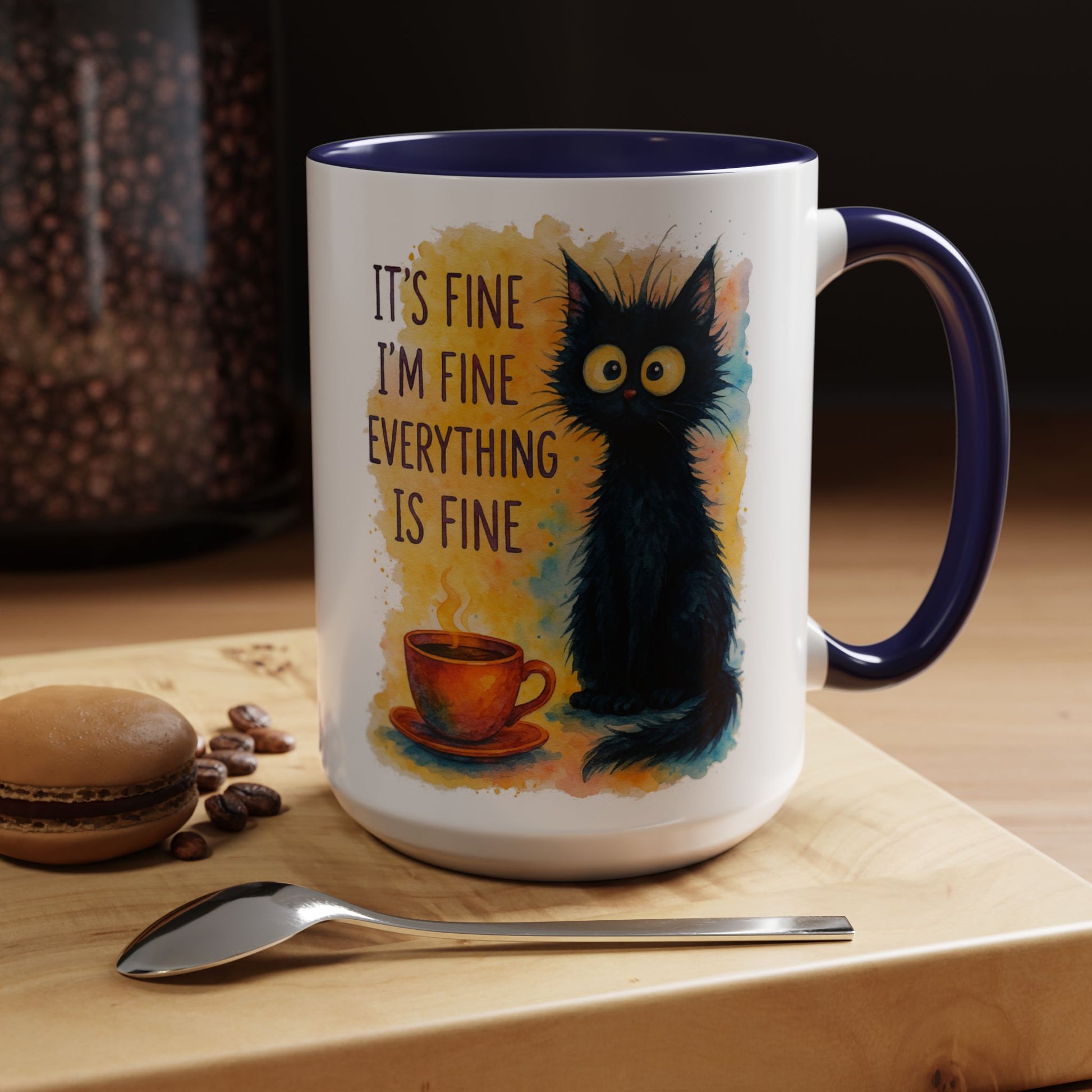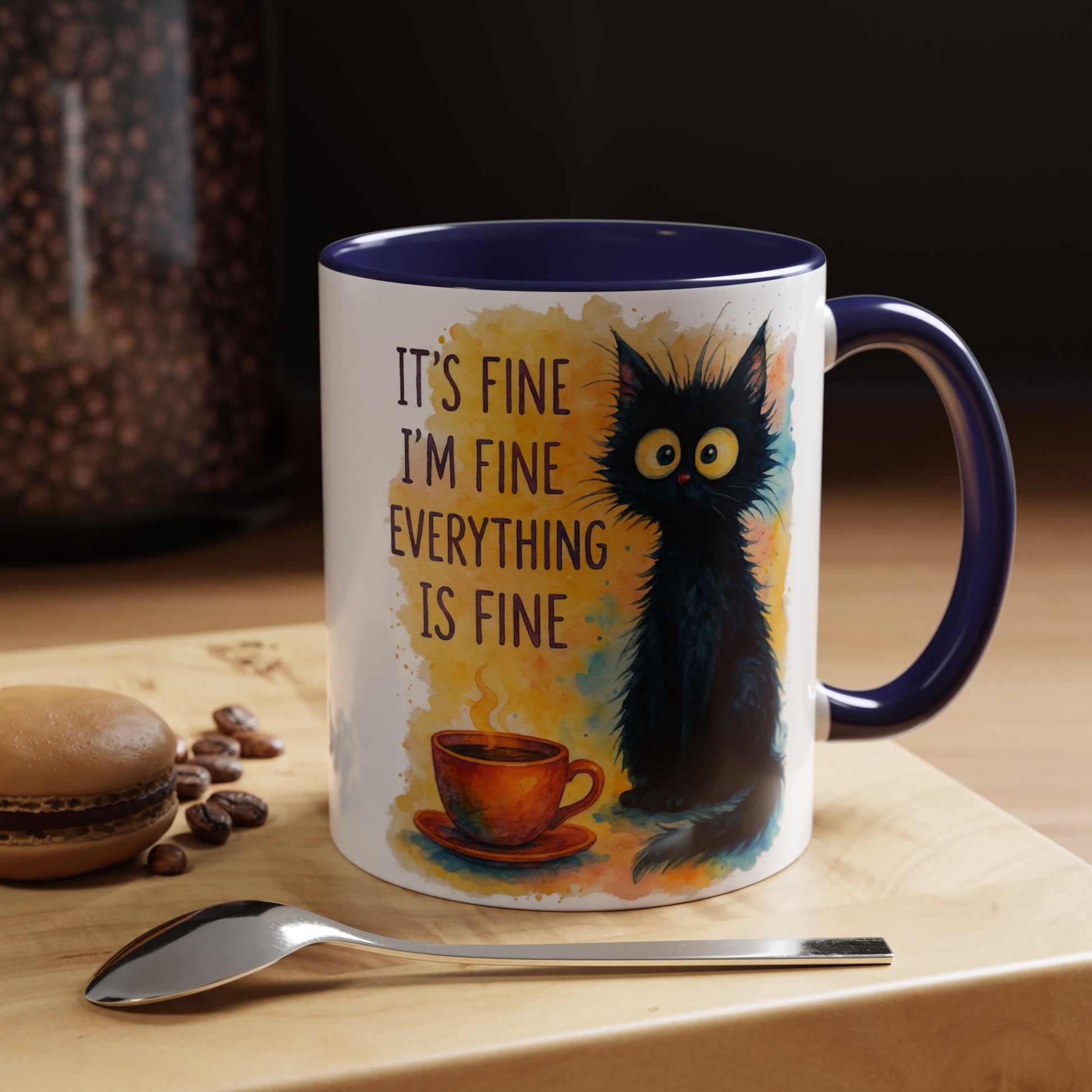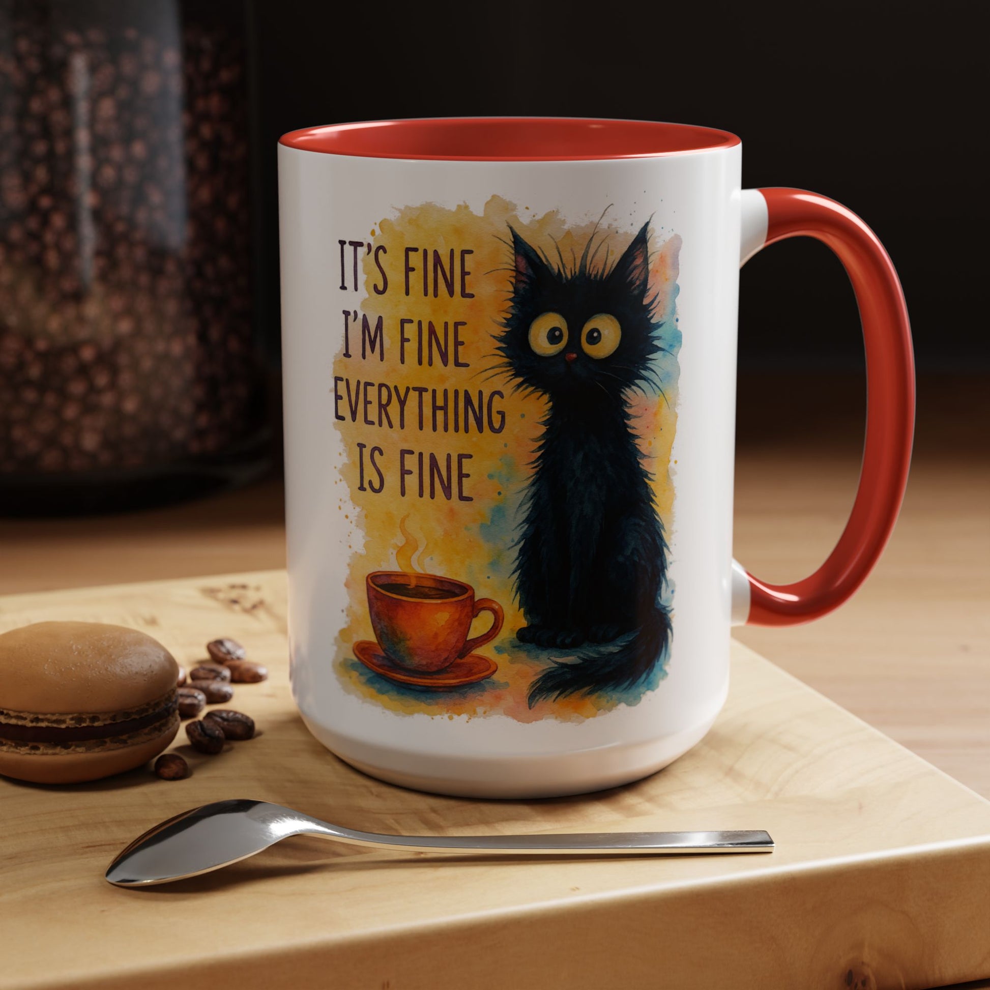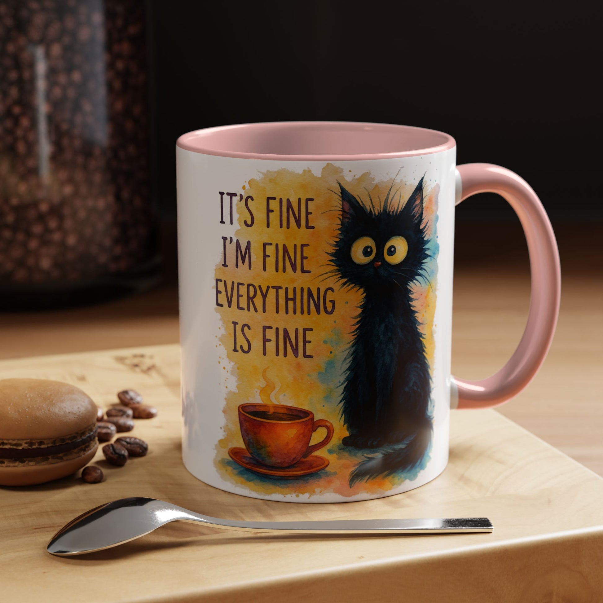 Whimsical Cat Accent Coffee Mug - 'It's Fine, I'm Fine, Everything is Fine'