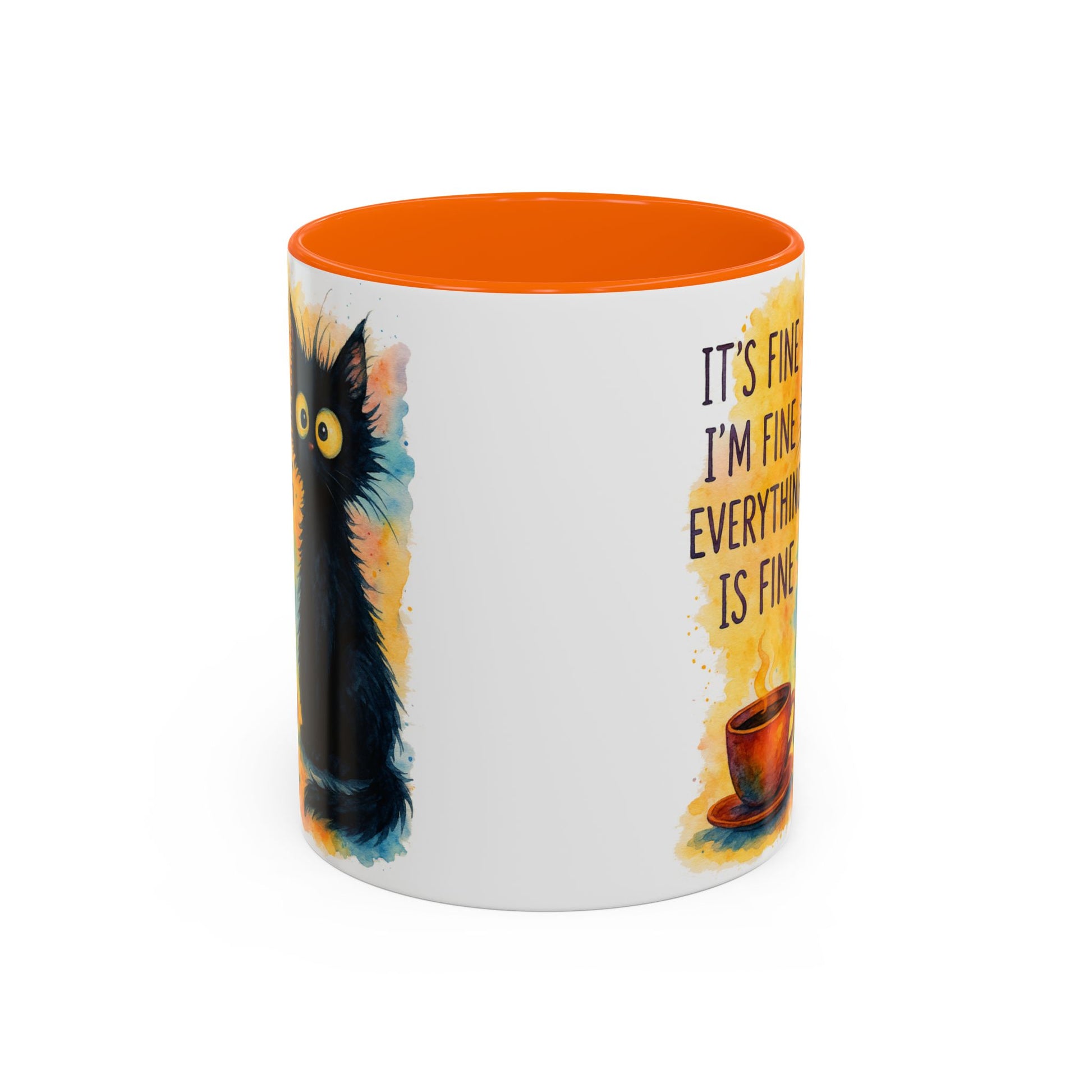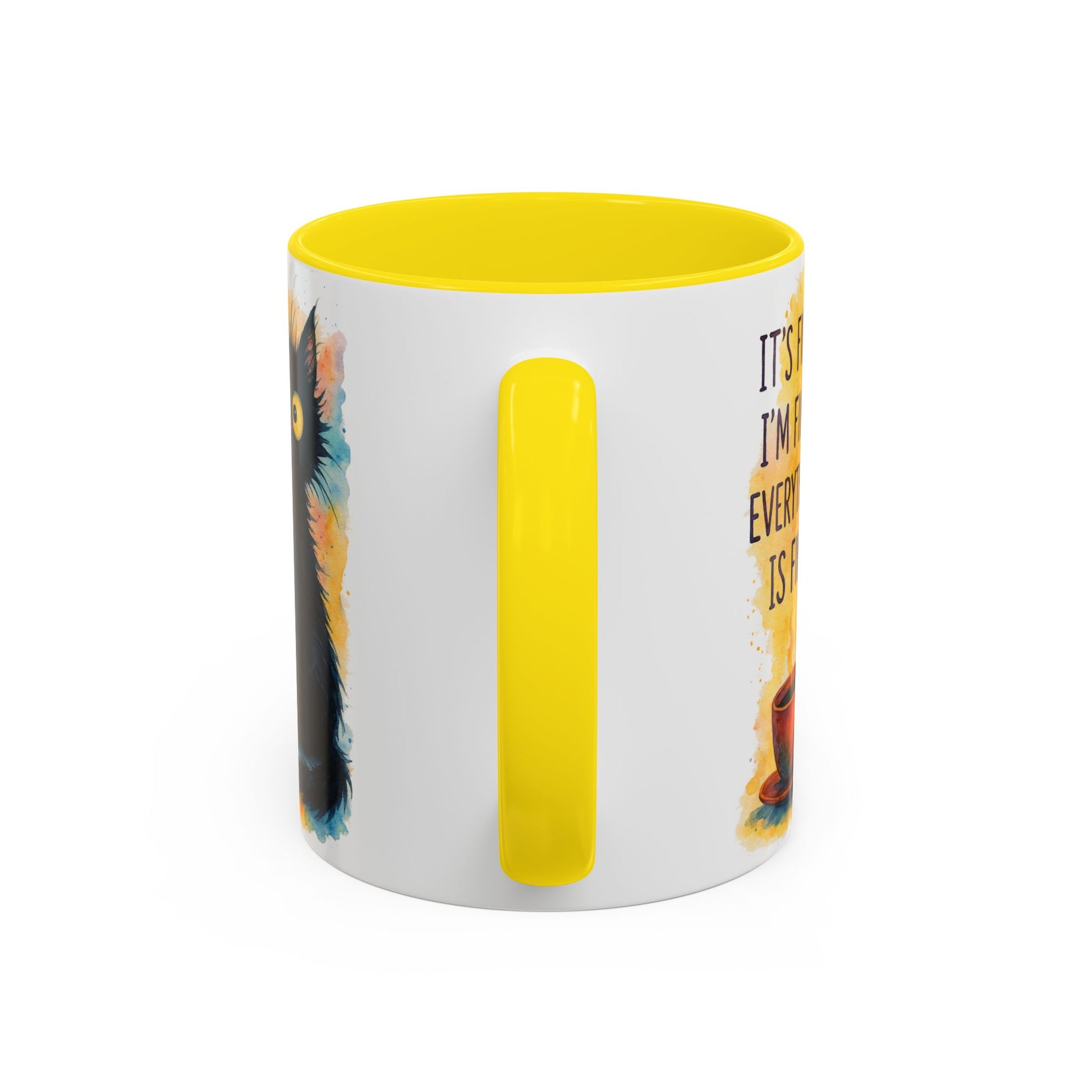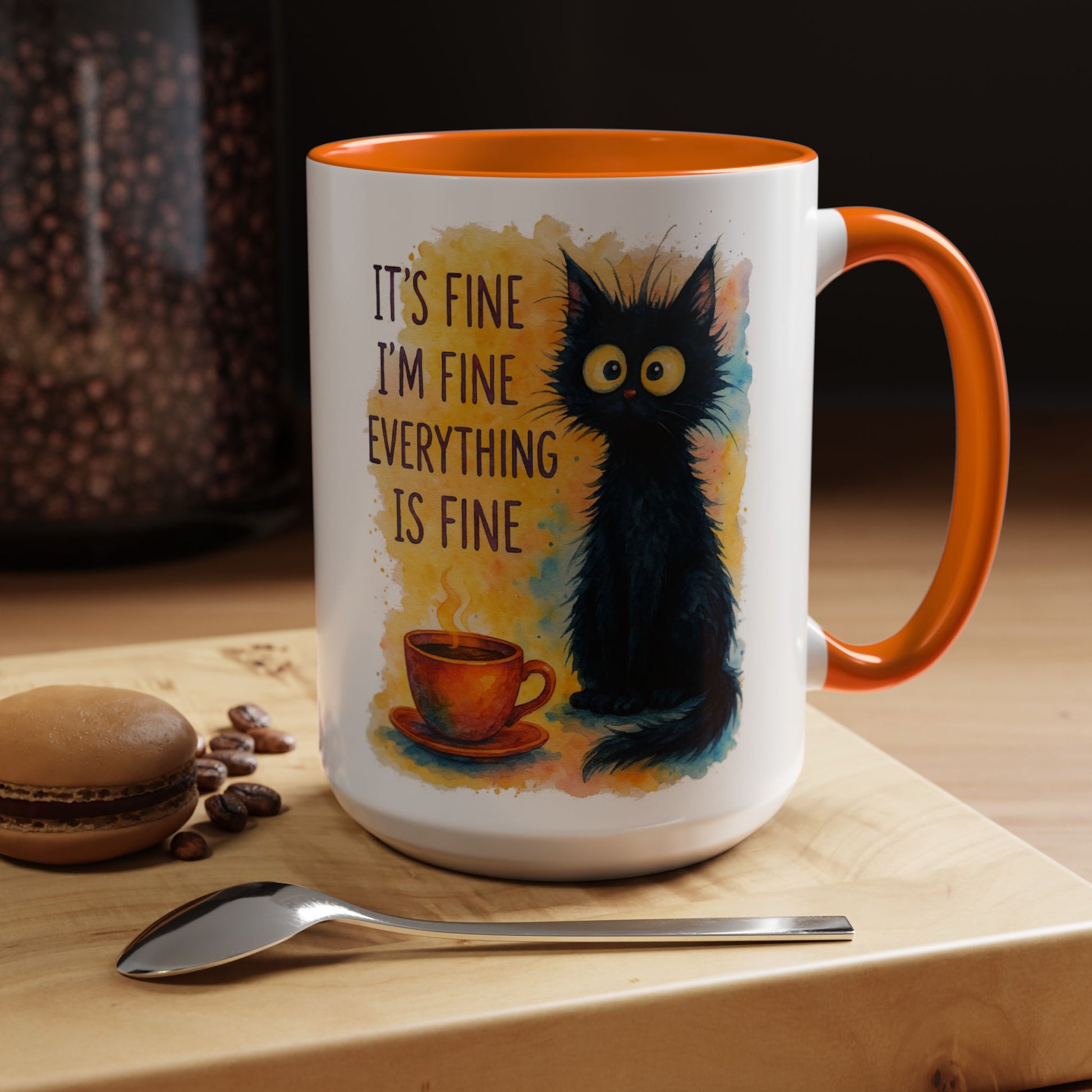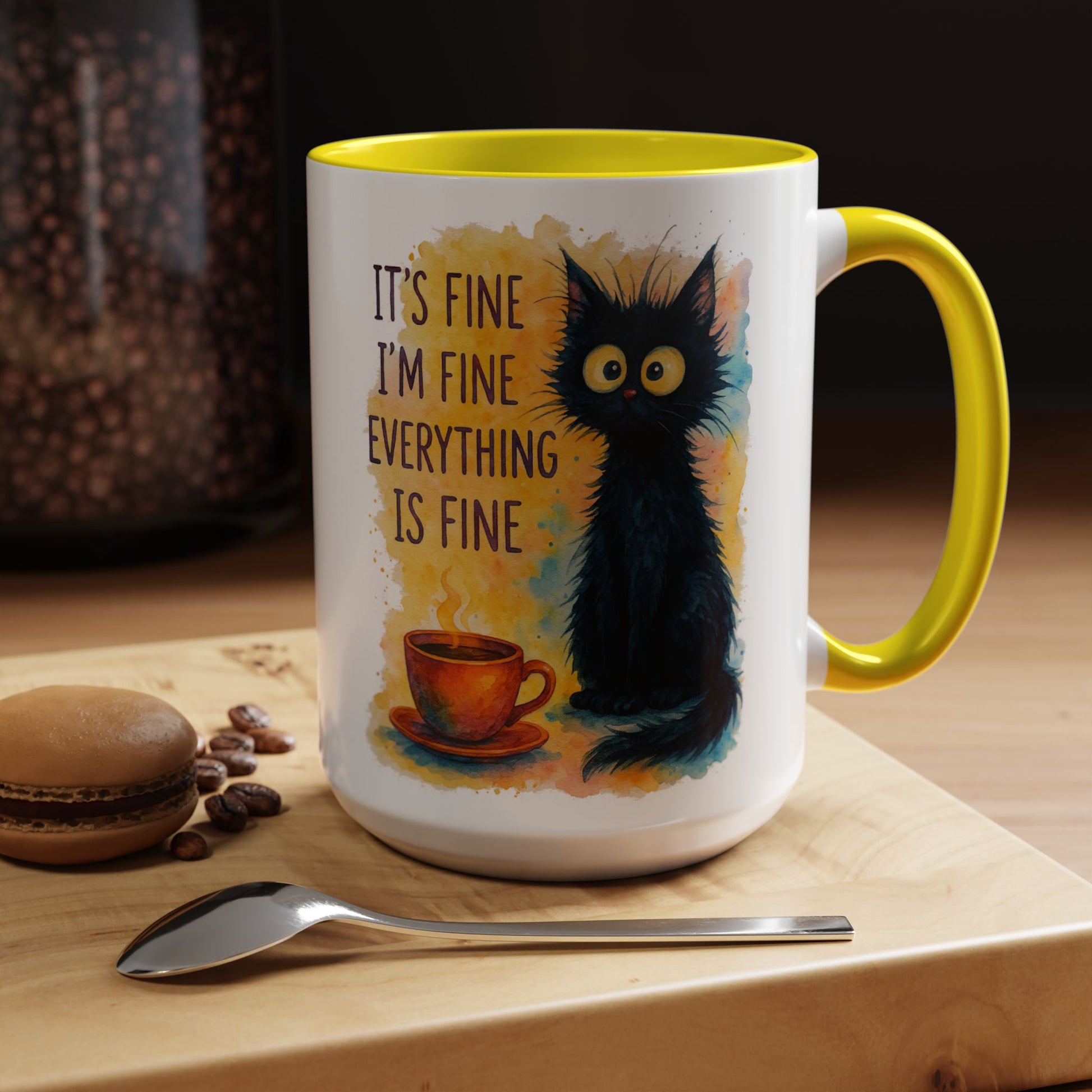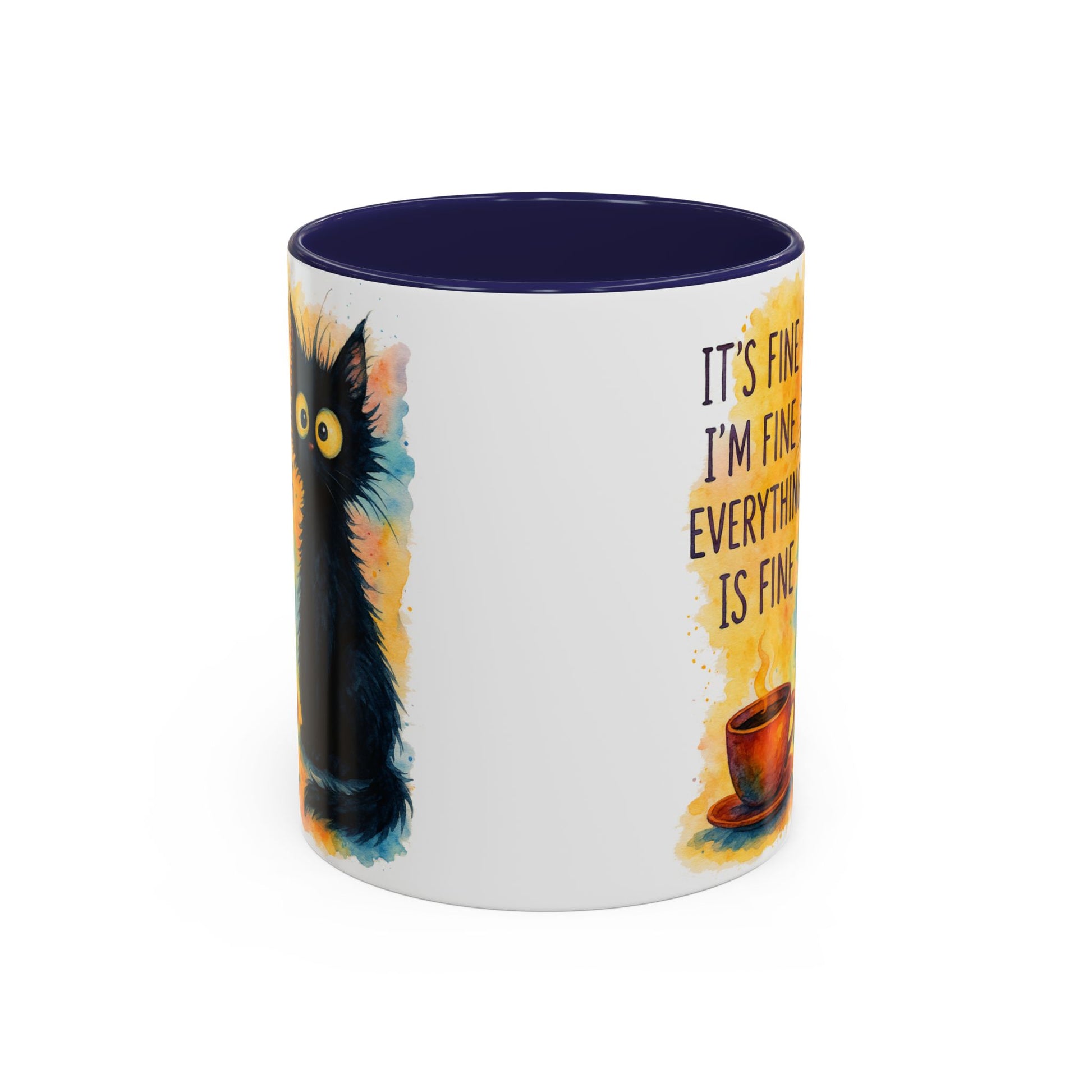 Whimsical Cat Accent Coffee Mug - 'It's Fine, I'm Fine, Everything is Fine'