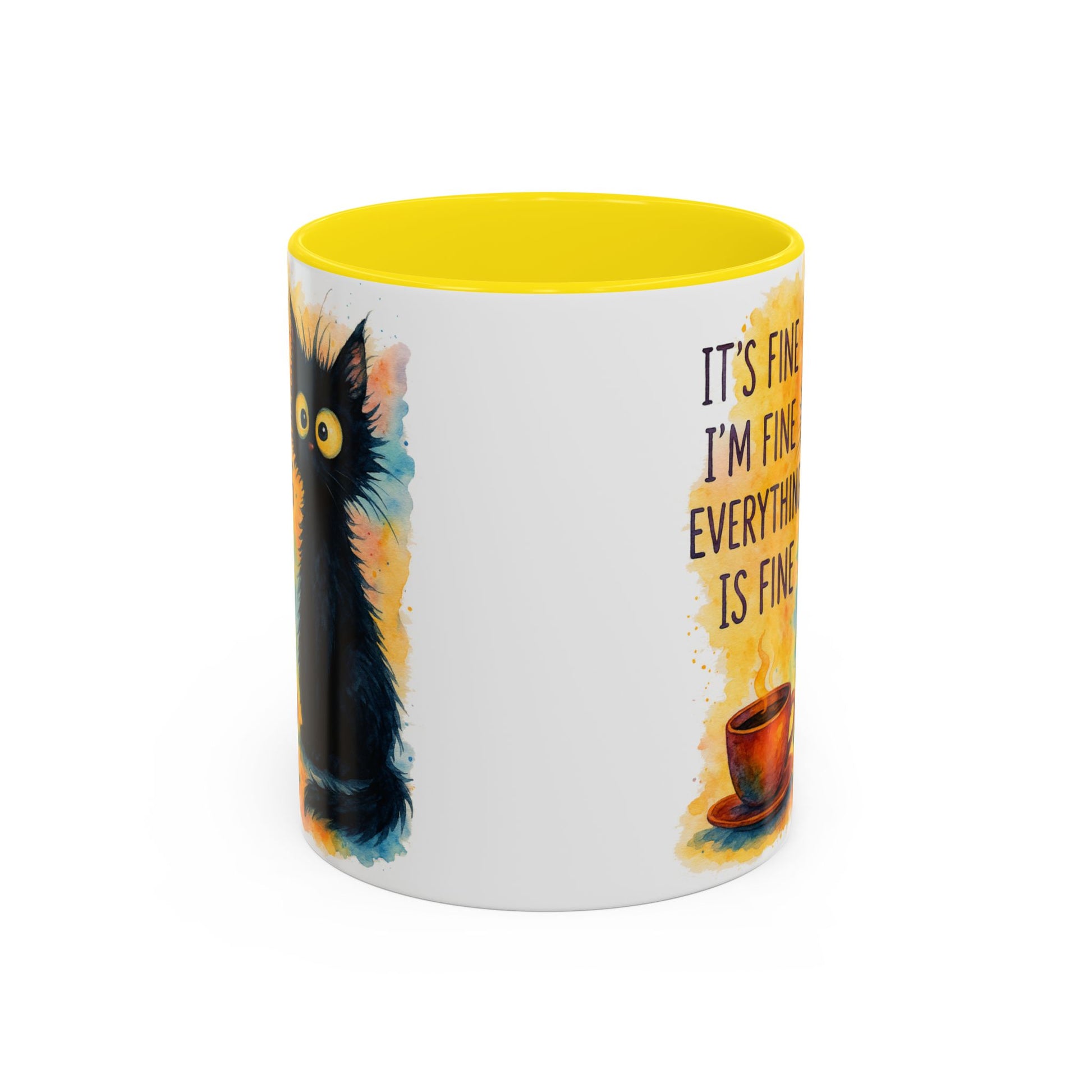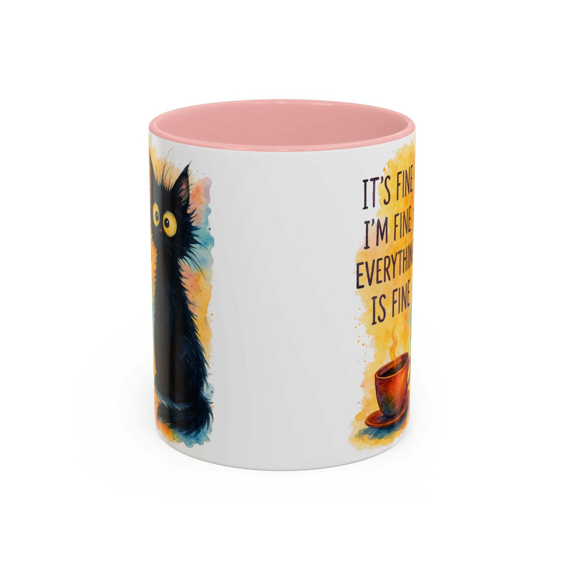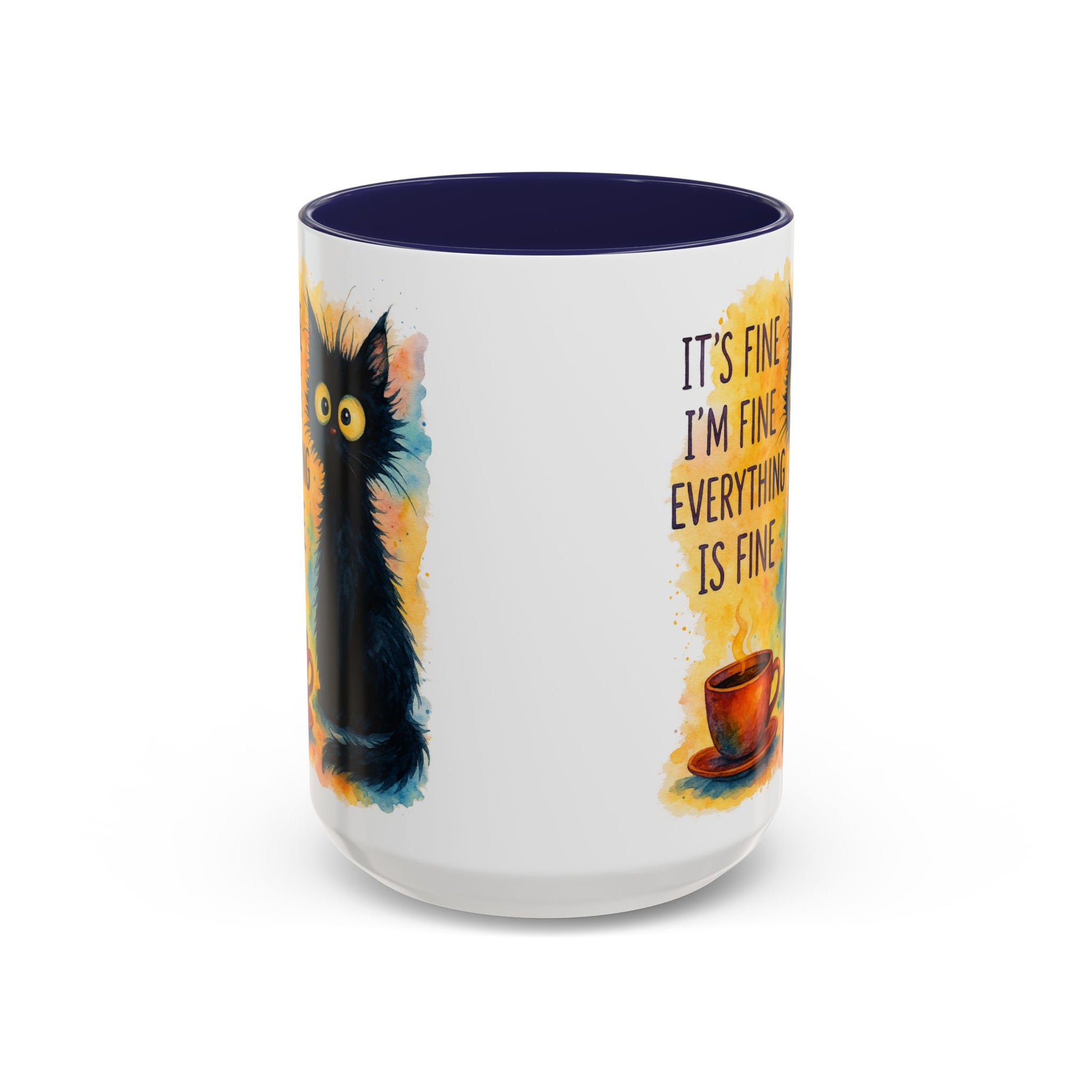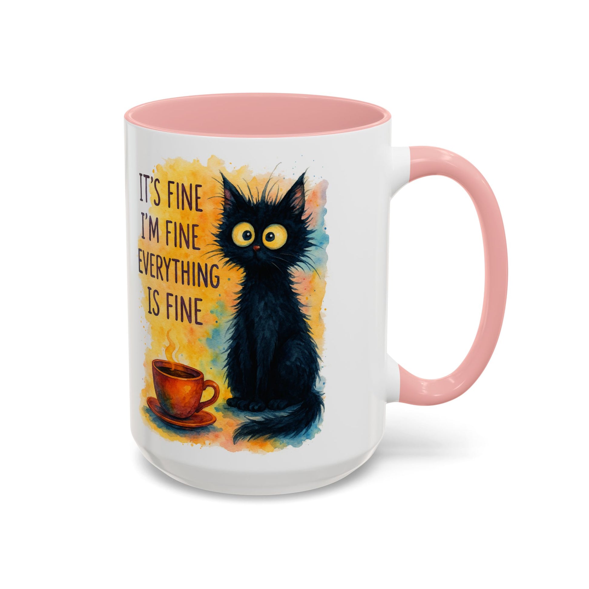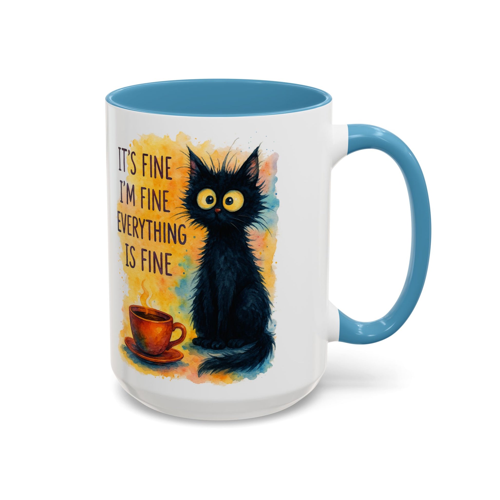 Whimsical Cat Accent Coffee Mug - 'It's Fine, I'm Fine, Everything is Fine'