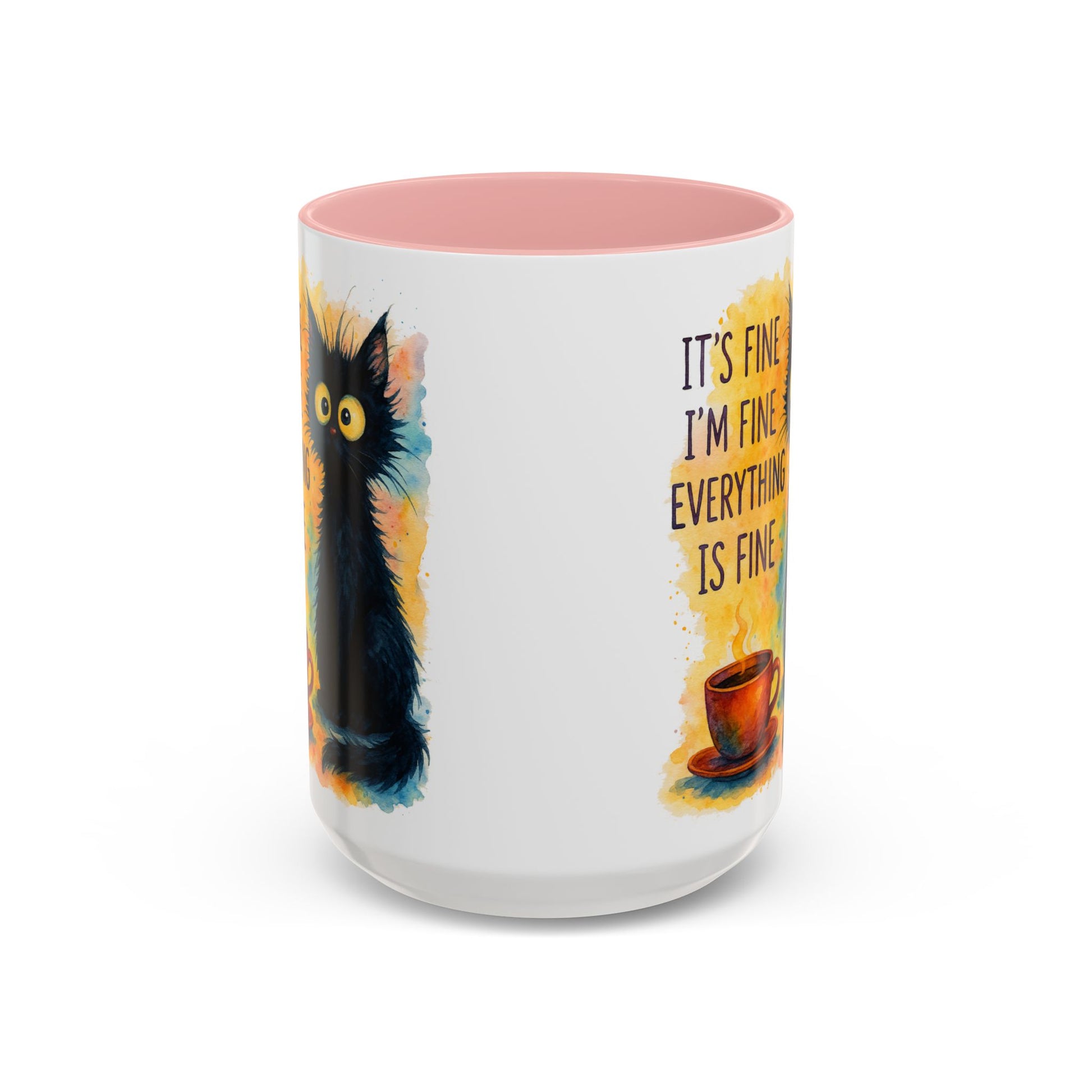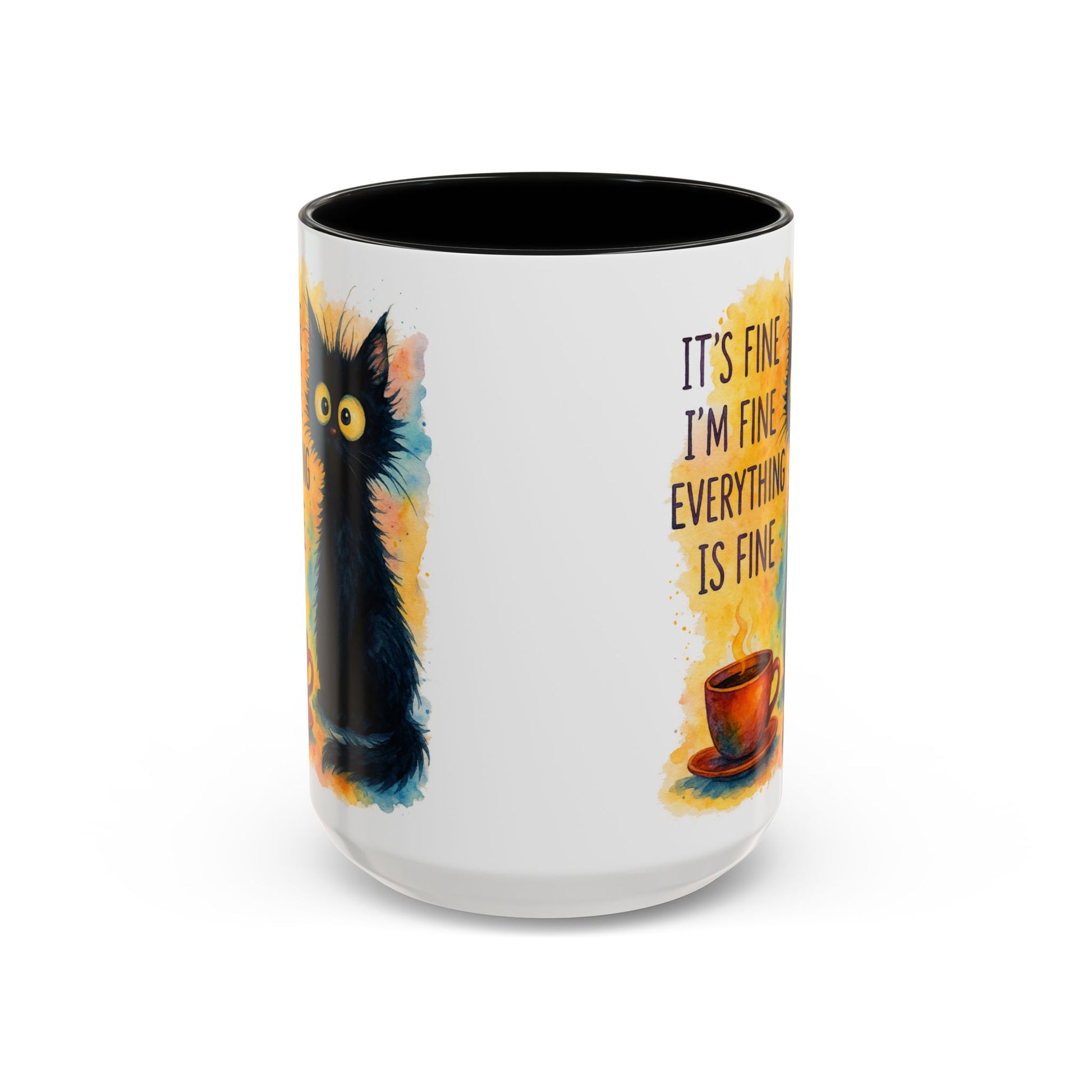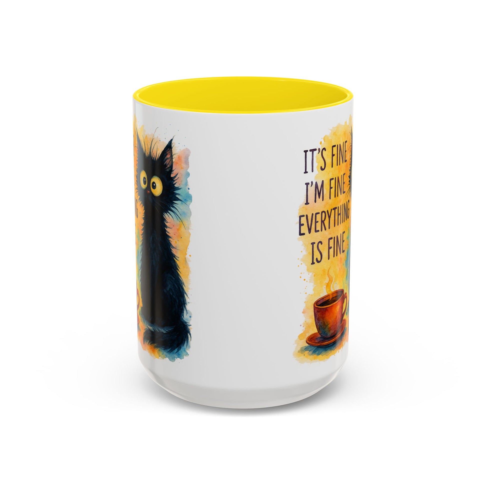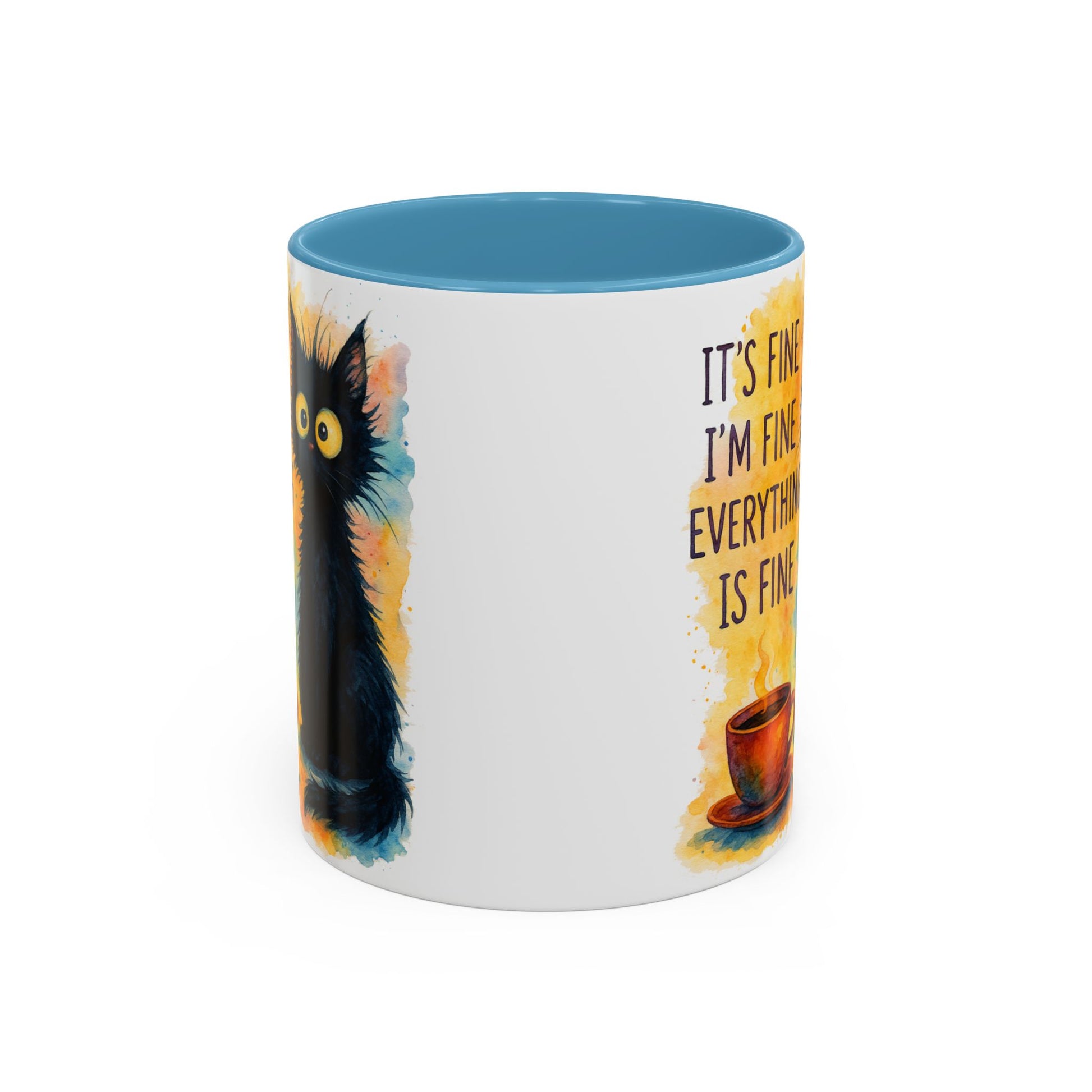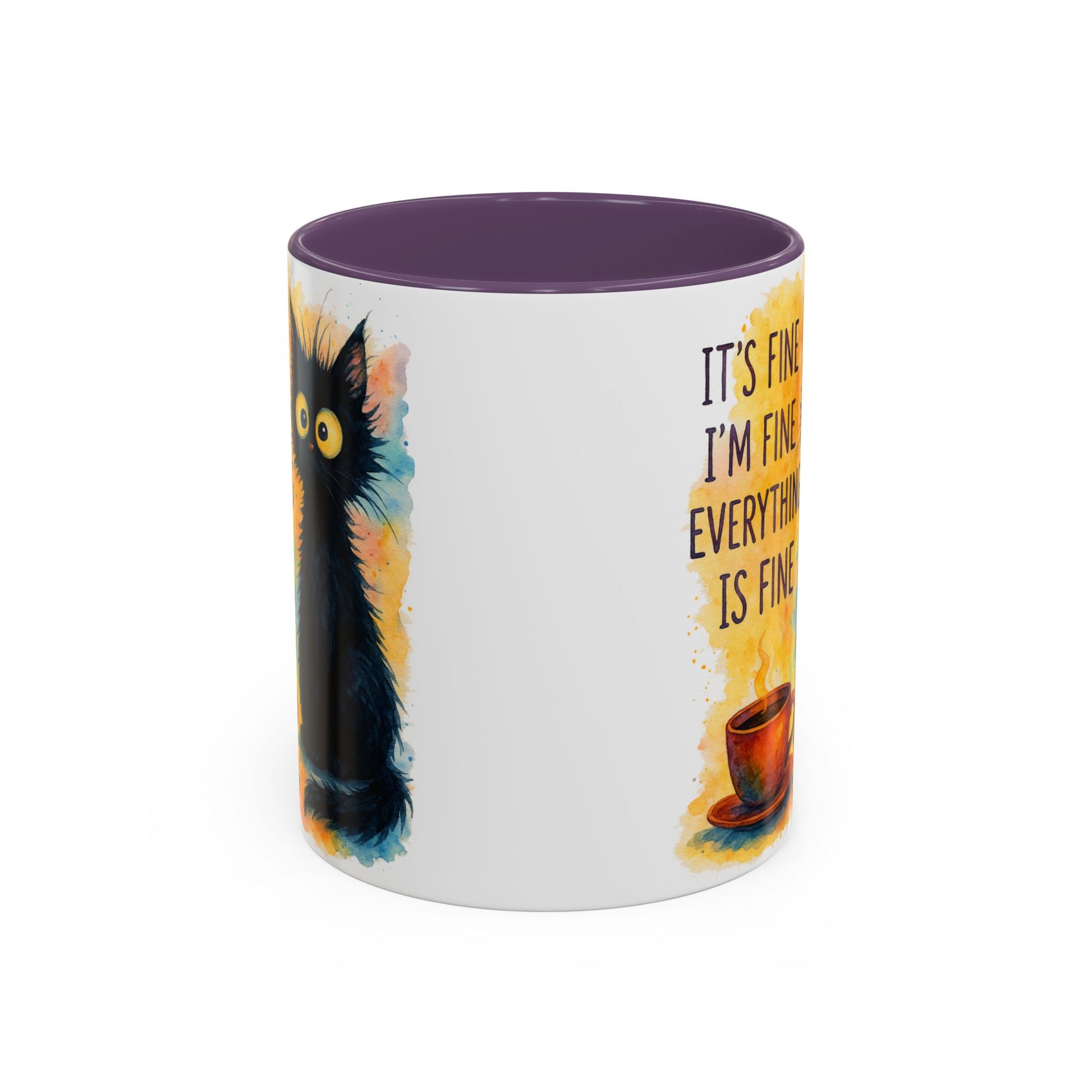 Whimsical Cat Accent Coffee Mug - 'It's Fine, I'm Fine, Everything is Fine'