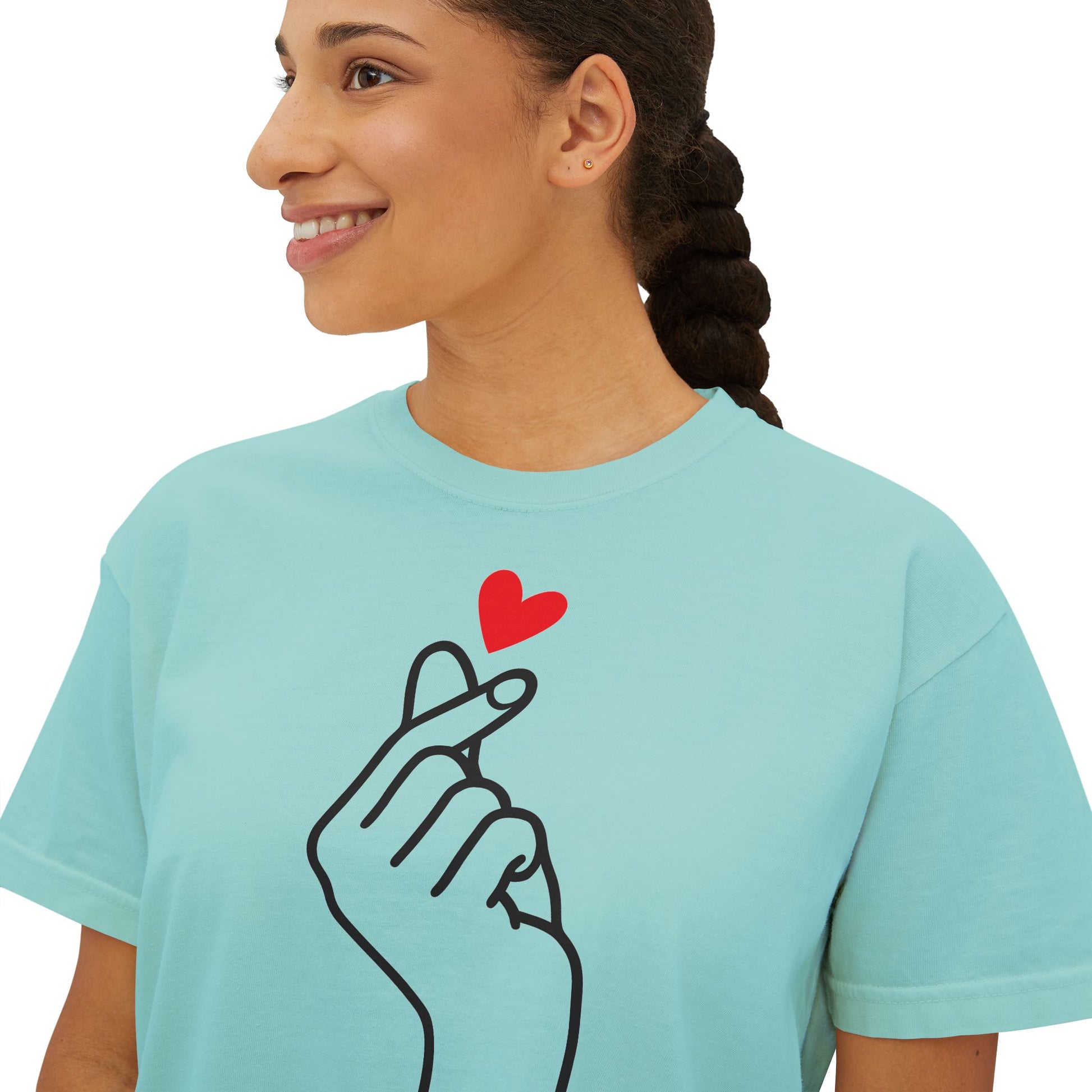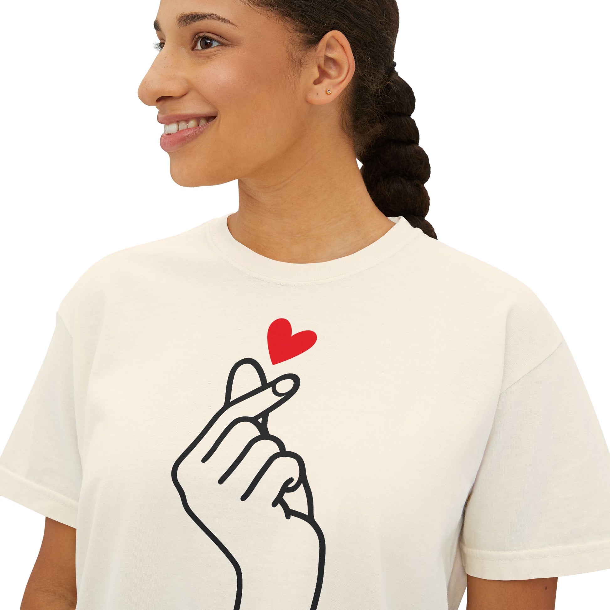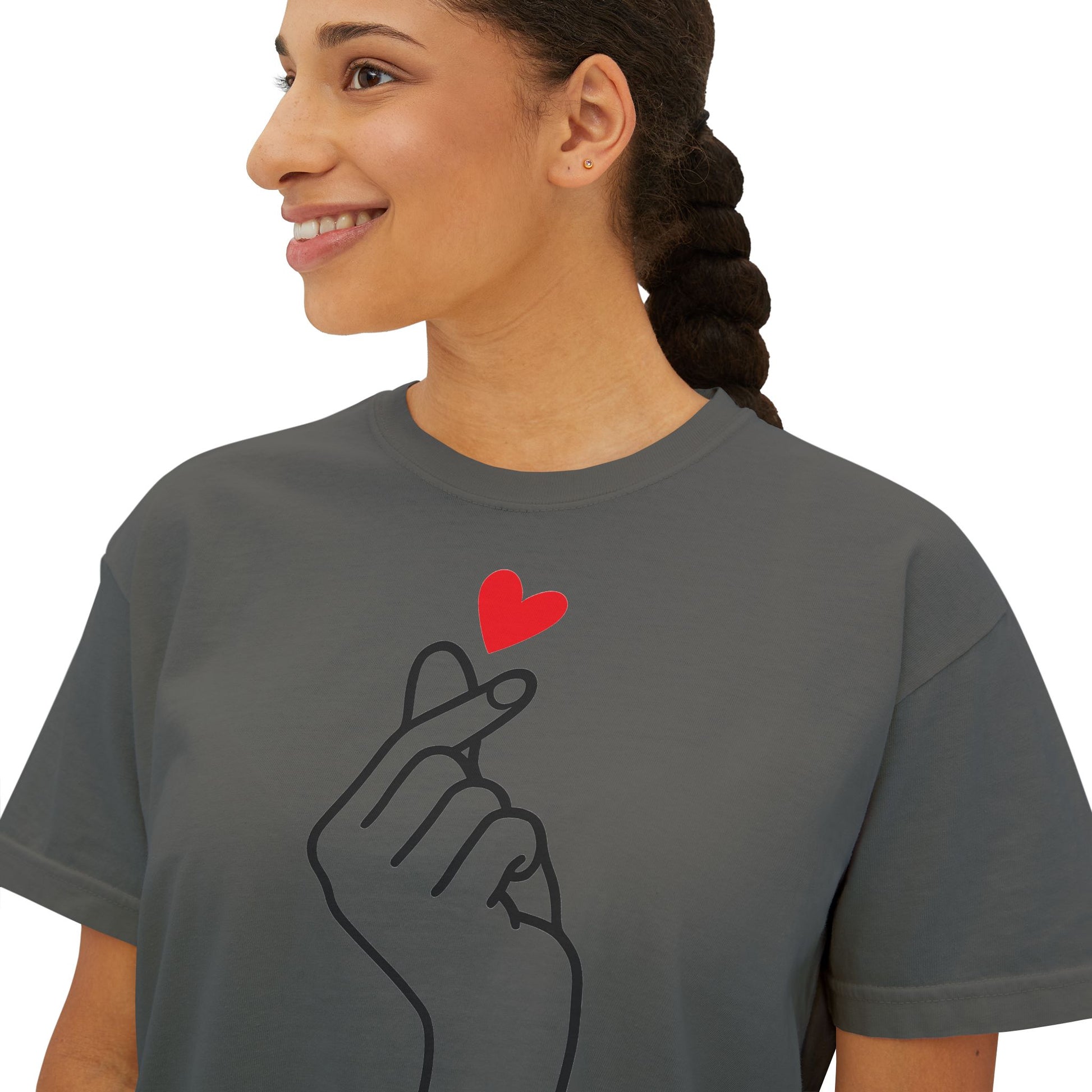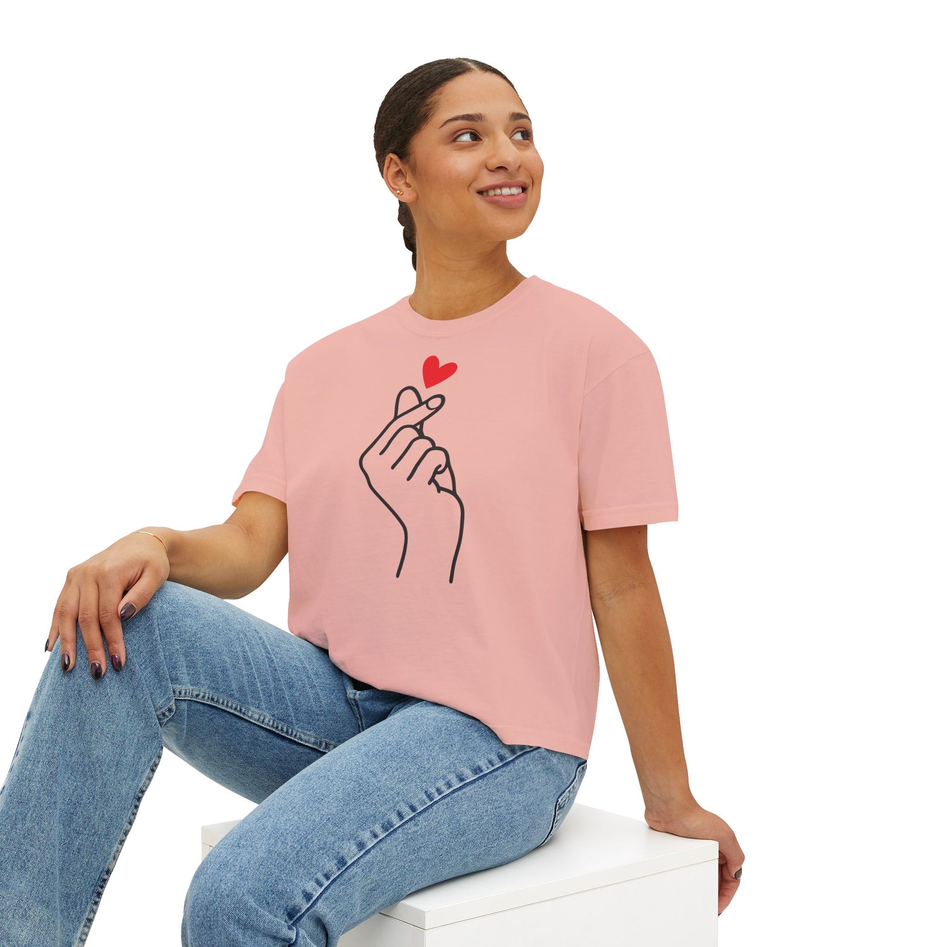 Women's Boxy Tee with Heart Design, Cute Casual T-Shirt, Gifts for Her, Love Themed Apparel, Easy Summer Style, Trendy Everyday Wear